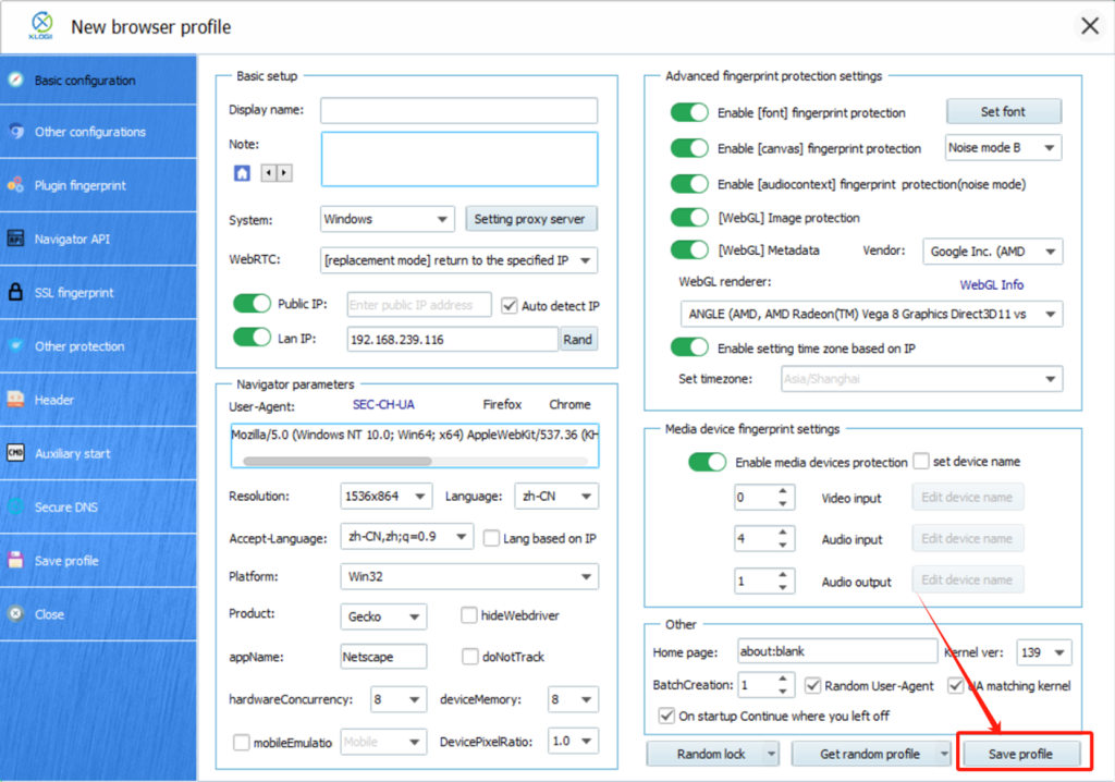 Step 10: Finally, click “Save profile” to complete the process.