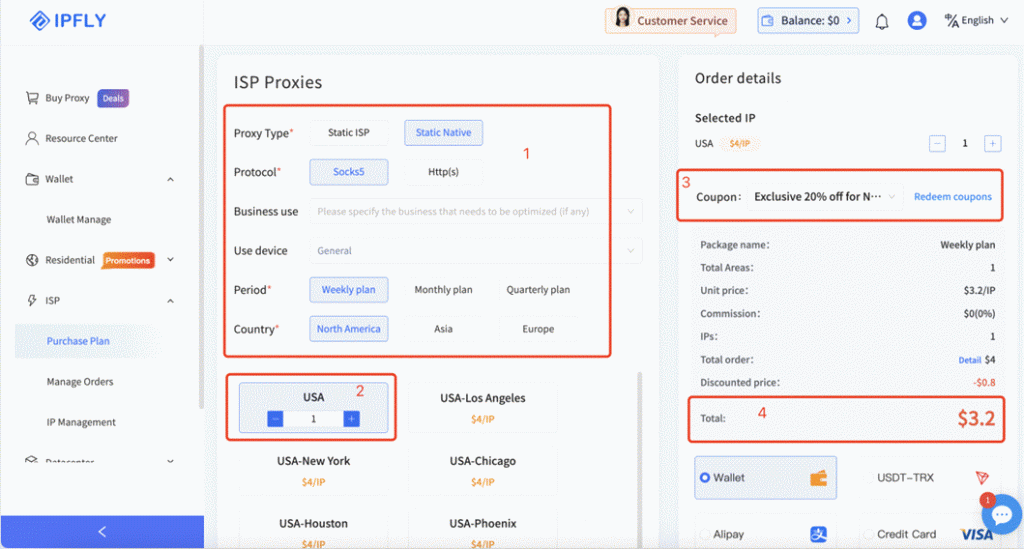 Step 2: Click “Buy Proxy” in the left menu bar, then select the proxy type you need.
