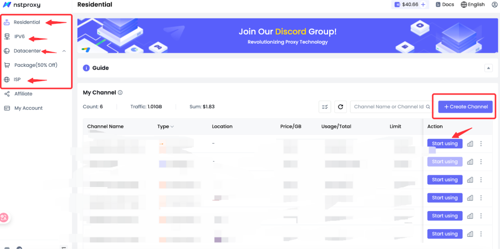 2. Choose your desired proxy type from Nstproxy (Residential, Datacenter, ISP) and complete your purchase. (Use bonus code:XLOGIN get 10%off )。