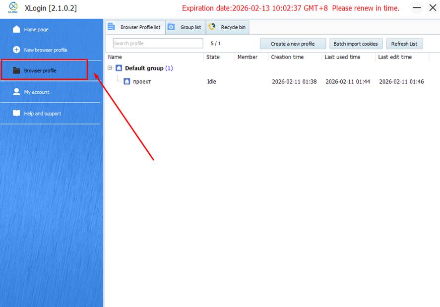 - In XLogin, open the Profiles / Browser Profile section.