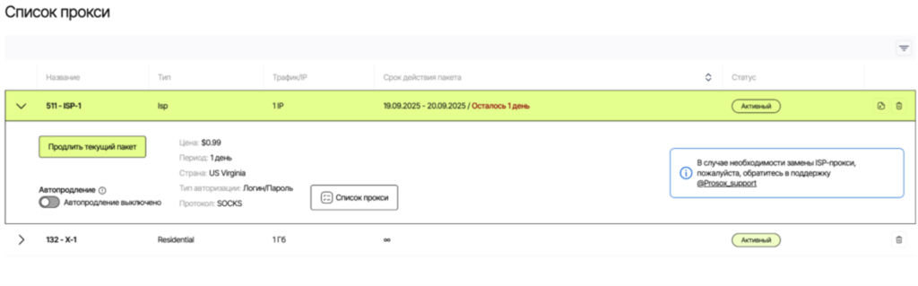 - Residential (residential, rotating) — for “picky” sites, parsing, advertising. IPs may change.