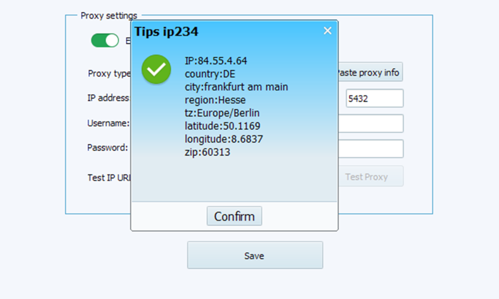 - Click Check Proxy.